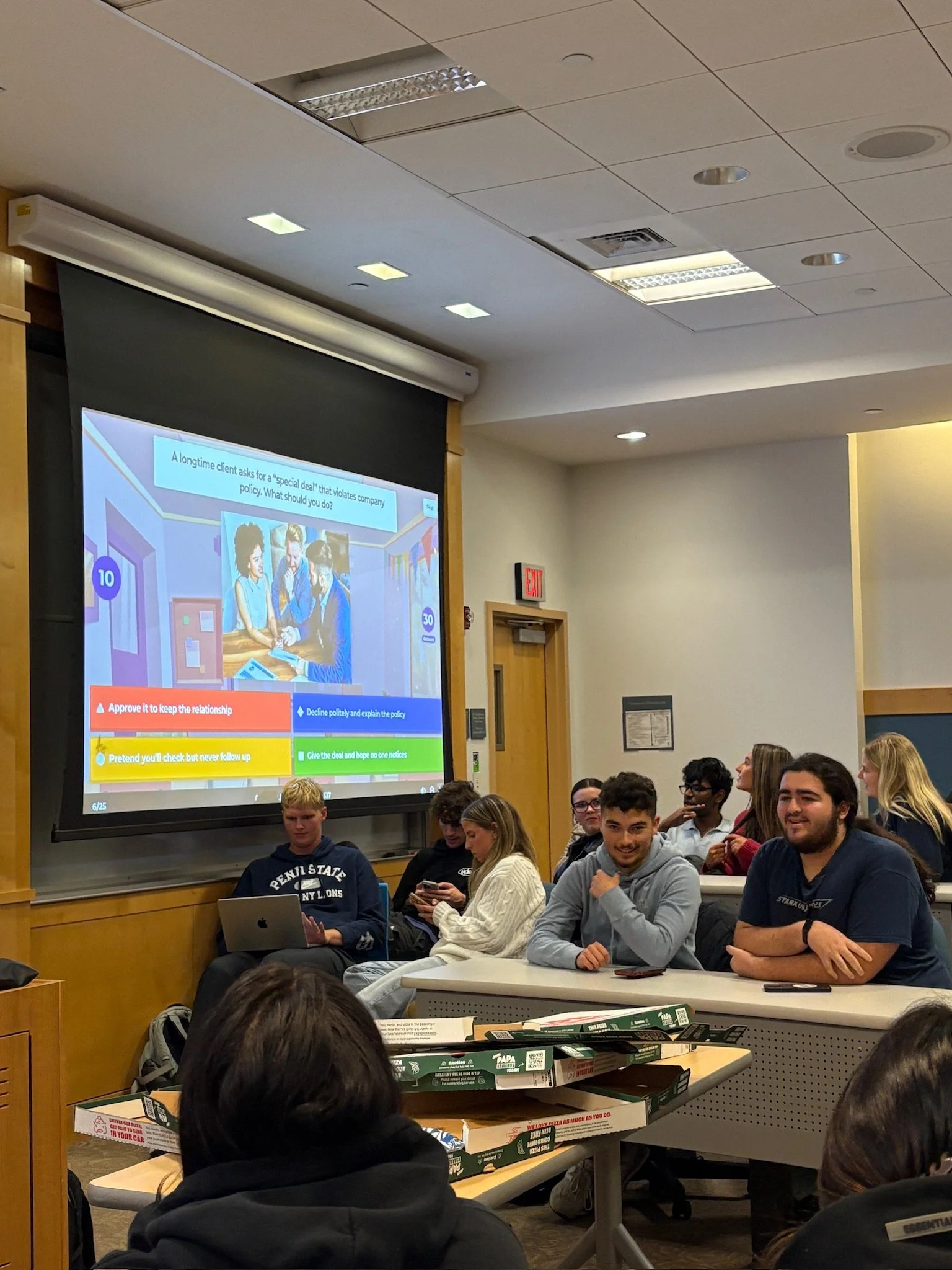 Members participated in a 25-question Kahoot quiz focused on ethical dilemmas commonly faced in sales. Designed to foster friendly competition, the activity connected classroom sales concepts with real-world decision-making. Through engaging scenarios, members discovered how ethical selling supports purpose-driven marketing and builds long-term trust.